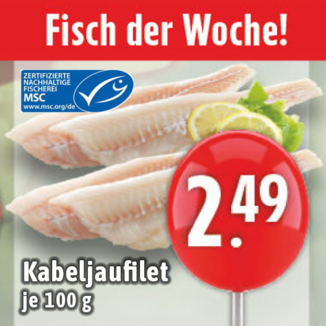 Kabeljaufiletje 100 gnur 2,49 € |